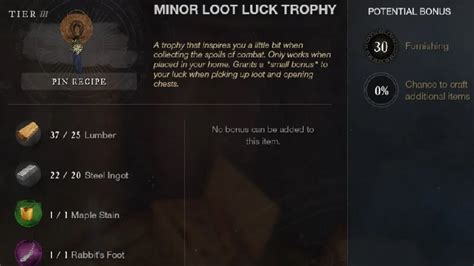 Web minor loot luck trophy [recipe] is a crafting blueprint from furnishing profession in new world mmorpg. Minor loot luck trophy tier iii. Web minor loot luck trophy t3 rare.